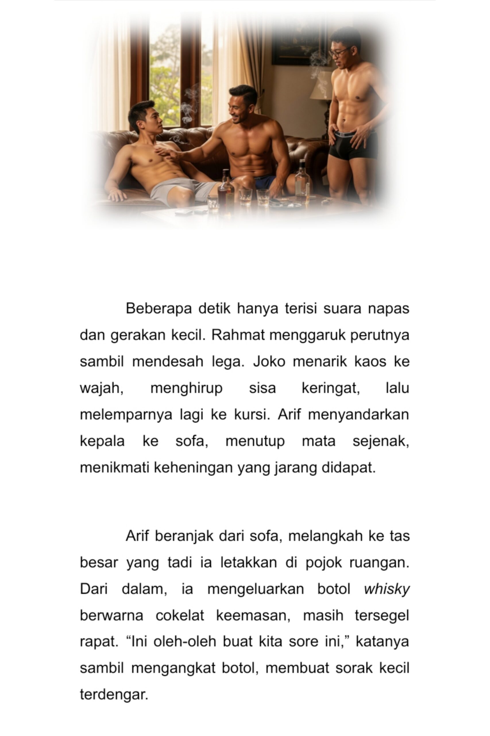 Obrolan santai berubah lebih berani, canda berkembang jadi tantangan, dan sentuhan yang semula ringan mulai menyimpan arti lain. Rasa penasaran, keinginan lama yang tak pernah diakui, serta dorongan untuk mencoba hal-hal baru menjebak mereka dalam situasi yang tak seorang pun sangka. Daniel, yang dikenal paling tenang dan berwibawa, mendadak menjadi pusat perhatian. Ia terseret ke arus yang tak lagi sekadar permainan persahabatan—arus yang bisa mengguncang rumah tangganya, bahkan meretakkan kepercayaan yang selama ini mereka bangun bersama.