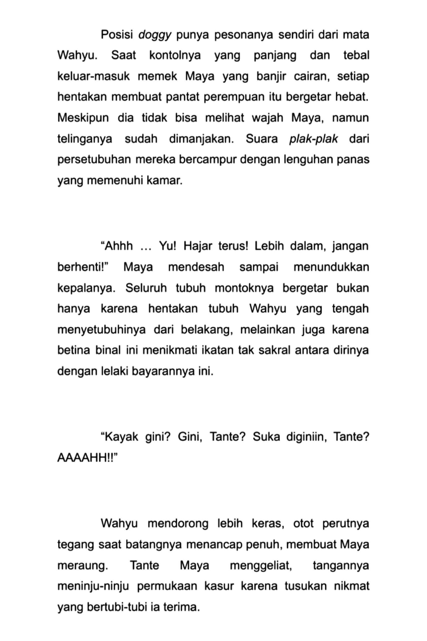 Malam itu ia menghajar seorang klien baru di ranjang, tubuh montok perempuan itu terguncang hebat, desahannya memenuhi kamar. Wahyu merasa di atas dunia… sampai suara pintu berderit dan sebuah teriakan berat membelah udara: